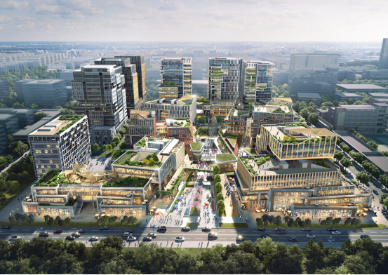 越界锦和尚城位于田林路140号,漕河泾开发区科创集群中心,周边有地铁9号线、12号线、15号线以及中环路、内环高架、沪闵高架三大城市主干道。项目总建面共计约 30 万 m²,集5A级花园无界办公、开放商业街区、base 佰舍酒店服务式公寓多元业态为一体。