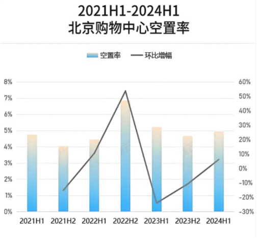 三里屯、朝青等传统商圈的更新改造工程逐步深入,2024年上半年北京购物中心的空置率环比提升约6%,但仍是一线城市中的最低值。其中,市级商圈购物中心的空置率为4.73%,区域商圈购物中心的空置率为5.53%。