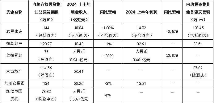 2024年上半年,嘉里建设投资物业租金收入约24.26亿港元,酒店营运收入8.22亿港元,均同比减少3%。
