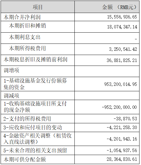 本期项目可供分配金额为2836.48万元,早在9月5日,嘉实物美消费REIT发布公告进行上市以来的第一次收益分配,收益分配基准日为2024年6月30日,每十份公募REITs份额可分配0.709元,分配金额共计人民币2836万元,占可供分配金额的99.98%。